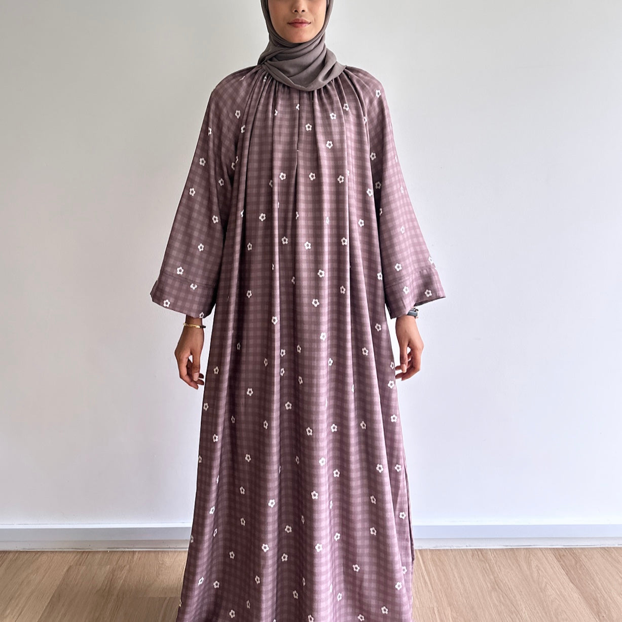 This dress is lightweight, flowy & easy-care,combines comfort with elegance. Designed with a front quarter zipper for ease, two functional side pockets, and a relaxed fit that drapes beautifully. The subtle checkered pattern adds a timeless charm, making it perfect for both casual days and special occasions.